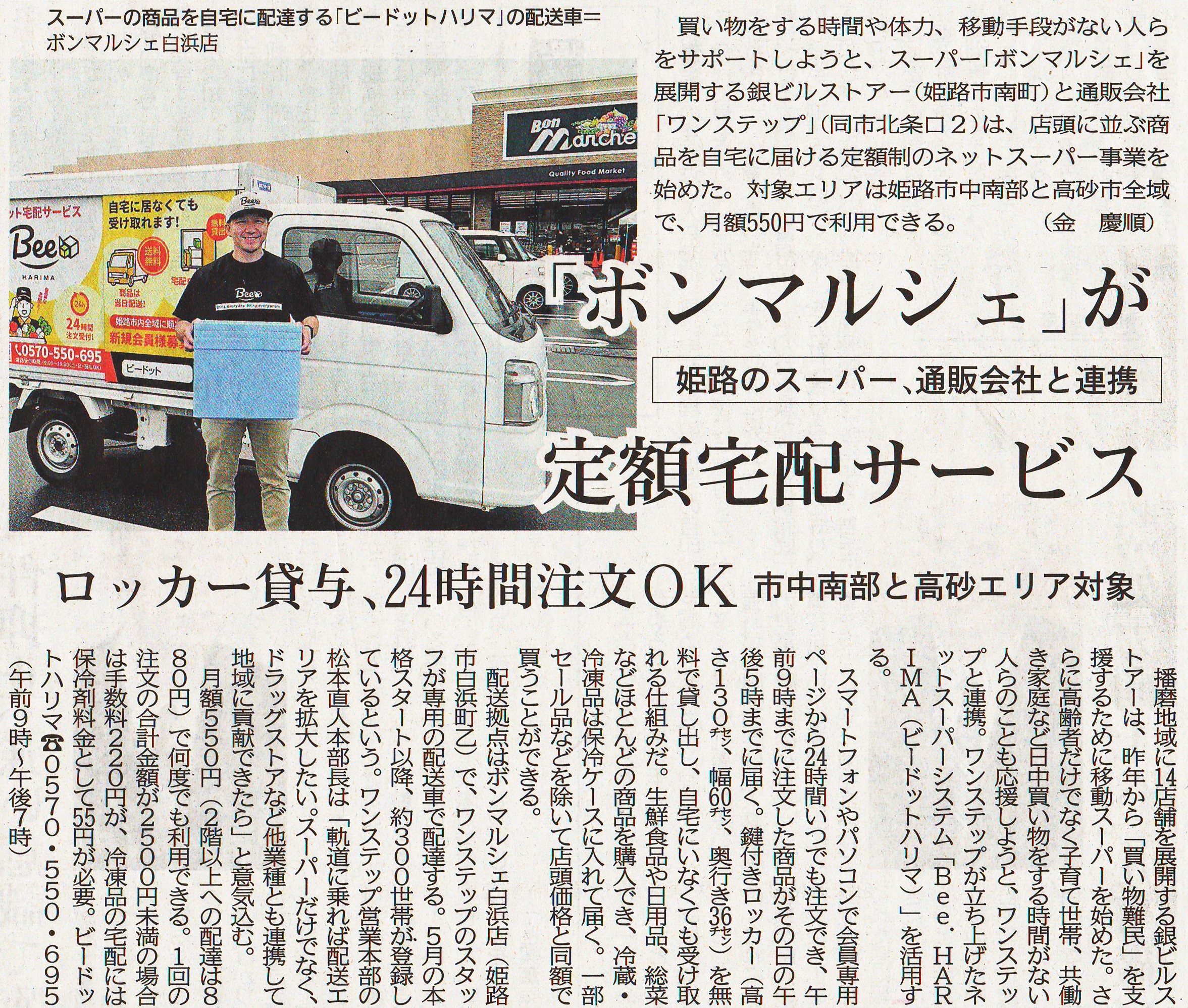 神戸新聞に掲載されました(Bee.)